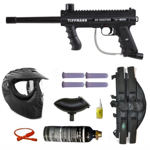 Tippmann 98 Custom PS ACT Paintball Marker Gun 3Skull 4+1 X-Ray Mega Set Tippmann's new 98 Custom Platinum Series is now easier to upgrade, modify and maintain.Package Includes New Tippmann 98 Custom ACT Marker Platinum Series 98 Custom Barrel 20 oz PMI Tank with pin valve PMI Xray Mask with Visor & Anti Fog Lens 3Skull 4+1 Deluxe Paintball Harness Black 3Skull 21" Orange Jerk Squeegee 1oz Gold Cup Oil 4 - 140 Round Heavy Duty Ultimate Paintball Clear Tubes 3Skull 200rd Black Ammo Hopper Wrenches Oil Manual Standard Squeegee Two Year Warranty from Tippmann Tippmann 98 Custom Features Split Receiver Design , which provides easier access to internal components for simplified installation of grip upgrades and modifications Secure Front Sight Spring and Trigger Pins , which makes the marker easier to service and reassemble Easy-to-Remove Power Tube Design with self-sealing/locking gas line secures the valve in place and eliminates two bolts from previous design making maintaining the marker quicker and easier Full Depth Pockets for ASA , which eliminates the need to loosen the ASA bolts when disassembling the marker New Barrel Porting and a Matte Finish , which improves marker air efficiency and reduces reflective glare Picatinny Rails , which makes adding a carry handle, scopes and other accessories a snap Redesigned, Vertical Front Grip , which offers improved stability and added texture for a more secure feel Redesigned Sling Mount End Cap , which allows players to easily attach a variety of different sling styles There is also a new Quick Thread Flatline Barrel, which attaches as easily as any other barrel to save players significant time and effort. The new Platinum Series maintains the core features of the original 98 Custom including, ACT (Anti Chop Technology), all aluminum die cast receiver, quick-release feeder elbow and a 200-round hopper. It's fully compatible for CO2, compressed air, or nitrogen.