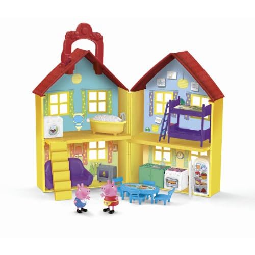 Introducing Peppa's Peek 'n Surprise Playhouse. Peek 'n Surprise Playhouse lets little girls play out Peppa's everyday adventures with her family, just like on the show. The Playhouse opens up to reveal 4 floors of play space including Bedroom, Living Room, Kitchen and Bathroom. The Playhouse comes with over 18 play pieces including 2 articulated figures (Peppa and George). Play pieces include lots of little surprises - washing machine flips to reveal clean clothes, fridge opens up to reveal food, barbecue flips for different meals, bathtub flips to reveal bubbles and more. Pieces store inside house.