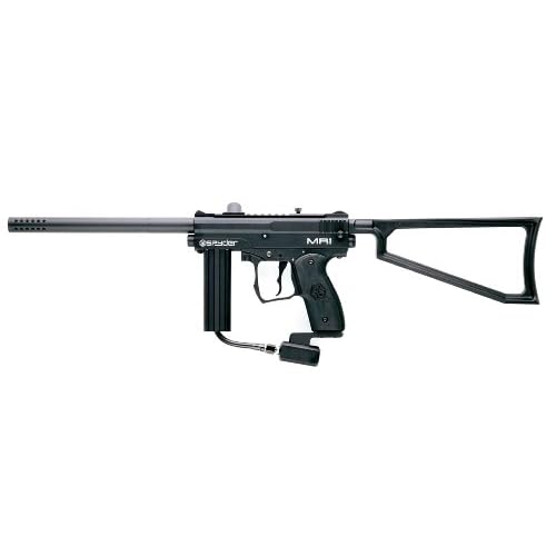 The Spyder MR1 will take a beating and keep on firing! The slide out pull pin, field strippable bolt, and full-length stock (included) make the MR1 an easily operated and highly accurate scenario marker with military resilience and stability.This semi-auto marker won't rust even when you're trekking through the wettest terrain, and you can play hard knowing you have a marker that will withstand anything you throw its way!Military Style Semi-Auto Paintball MarkerAll Aluminum Constructed BodyErgonomically Designed Aluminum Trigger FrameAluminum Magazine Style Fore-GripStandard Picatinny Rail (for Mounting Scopes or Sights)Removable Composite Shoulder StockDurable Matte Anodized FinishNo-Slip Rubber Grip PanelsQuick Strip Delrin Bolt12" Muzzle Break BarrelOff-Set Feed NeckTwo Finger TriggerAngled Bottomline with Drop ForwardOperates on CO2 or Compressed Air