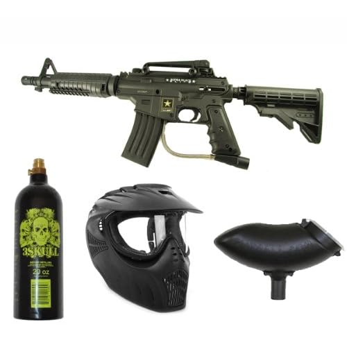 US Army Alpha Black Tactical Paintball Marker Gun 3Skull X-Ray Set Black Alpha Black Tactical Marker includes an M16 style six position collapsible stock and an M16 style shroud with built-in sight. The marker features a realistic military appearance and comes with a high-performance 11 barrel, an integrated carry handle and a removable magazine that doubles as a tool kit. Hopper sold separately. Package Includes US Army Alpha Black Tactical Marker Gun 3Skull 200rd Black Hopper New 20oz CO2 Tank with pin valve Empire XRay Paintball Goggles