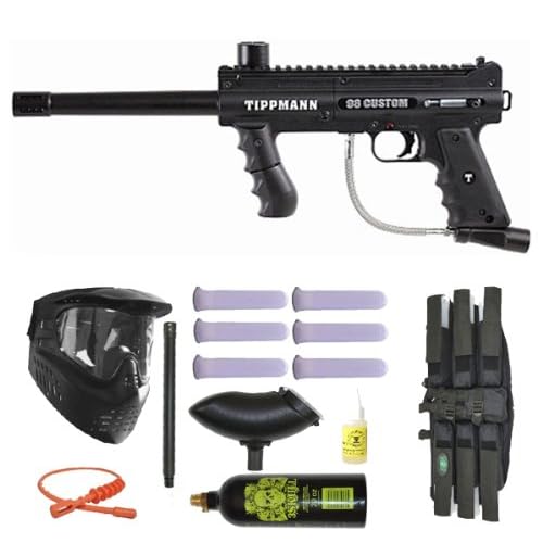 Tippmann 98 Custom Paintball Marker Gun 3Skull Super Mega Set The Super Mega set has everything you need to get started. This is the complete package with a 16" Tactical barrel upgrade and double trigger. The barrel is the first item you need to upgrade and now with the super mega set it is included. Easily take out your opponents with a rate of fire increase from the double trigger plus range and accuracy with the 16" sniper barrel. Package Includes New Tippmann 98 Custom 16" Scout Barrel 3Skull Double Trigger 3Skull 20 oz CO2 Tank with pin valve(ships empty) GXG XVSN Mask with Visor & Anti Fog Lens 3Skull 6+1 Deluxe Paintball Harness Black 6 - 140 Round Heavy Duty Ultimate Paintball Clear Tubes 1oz Gold Cup Oil 3Skull 21" Orange Jerk Squeegee 3Skull 200rd Black Ammo Hopper Wrenches Oil Manual Standard Squeegee Two Year Warranty from Tippmann